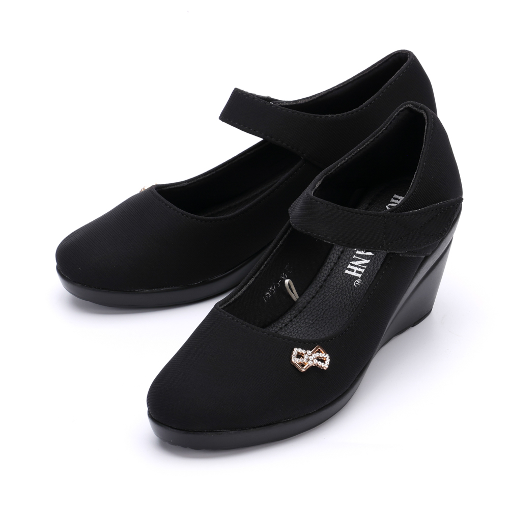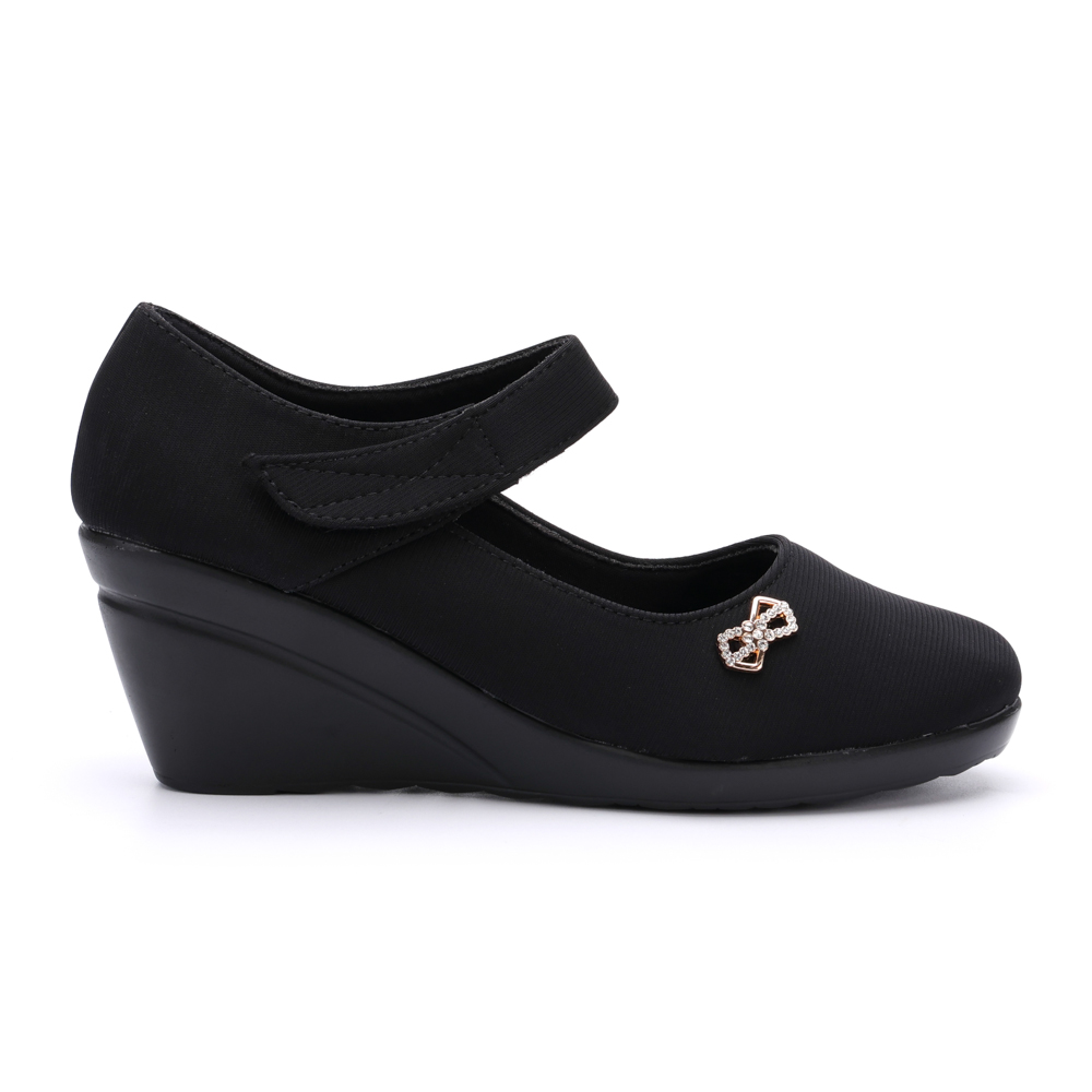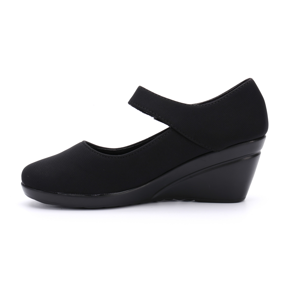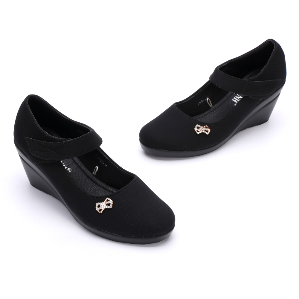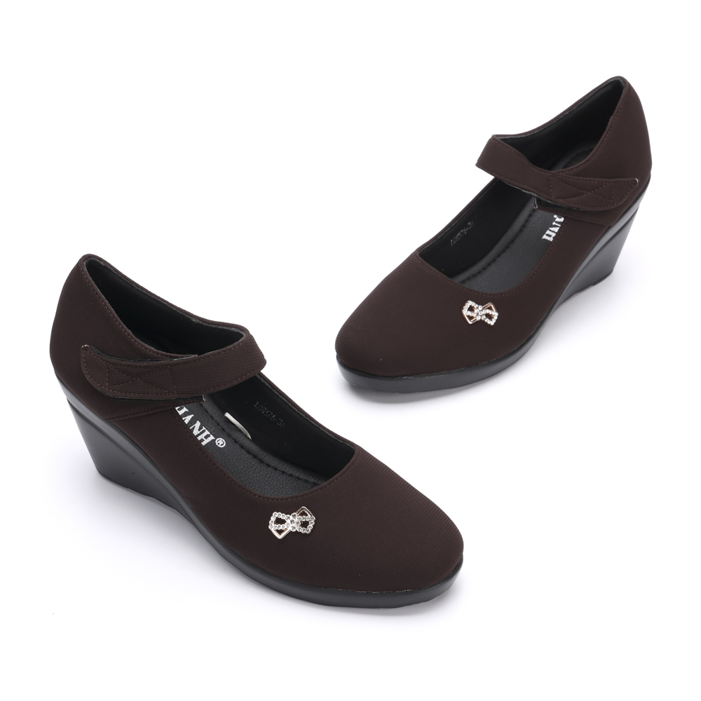 - Thiết kế giày có quai dán ngang chân tạo cảm giác chắc chắn khi di chuyển. Giày được may từ chất liệu vải cao cấp, mặt lót thân giày mềm mại, nâng đỡ bàn chân. Đế cao PU nhẹ êm giúp bạn vừa nâng chiều cao vừa thoải mái khi di chuyển.