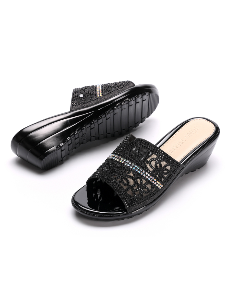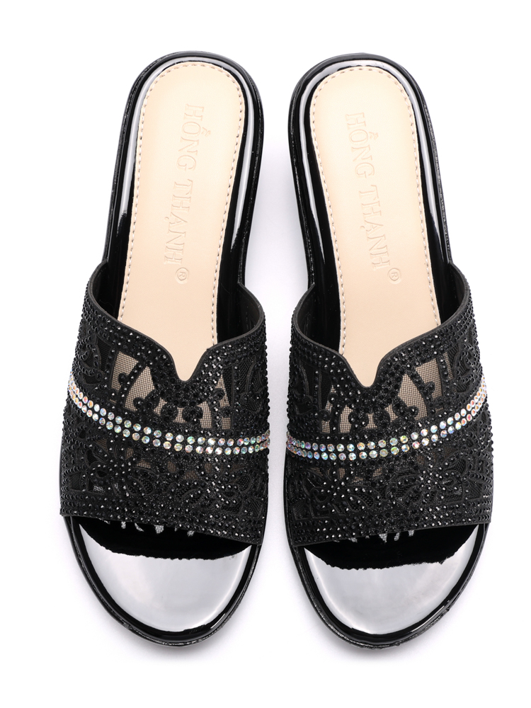 Dép Xuồng quai đính đá cao 5cm 9156