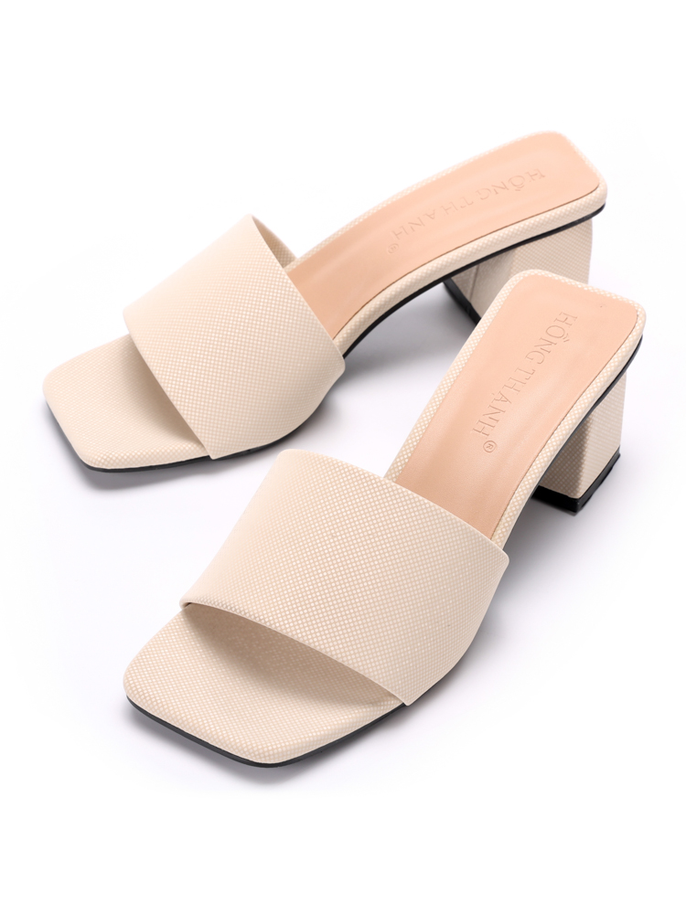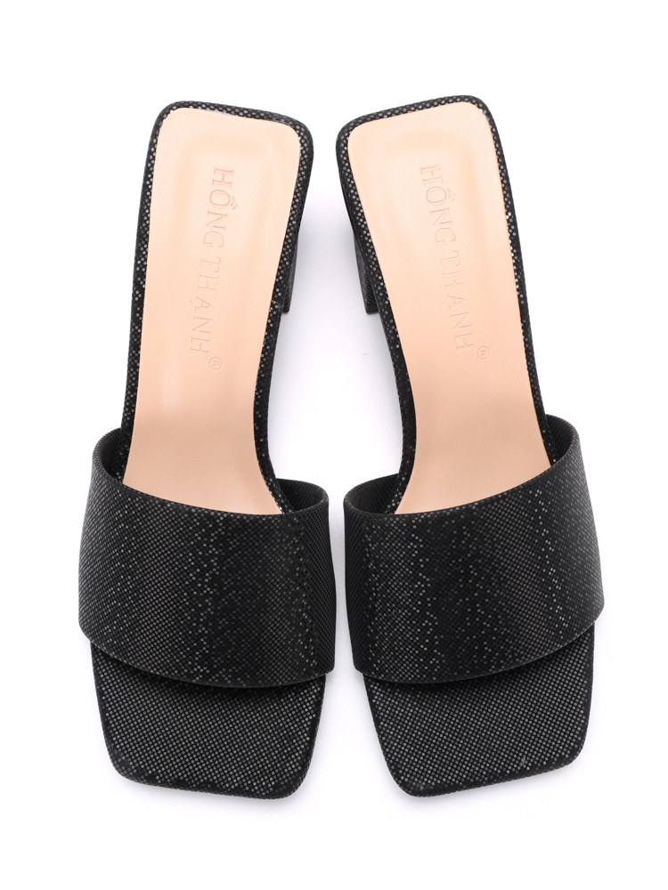 Dép bản to cao 6f gót vuông 9086 đen|kem