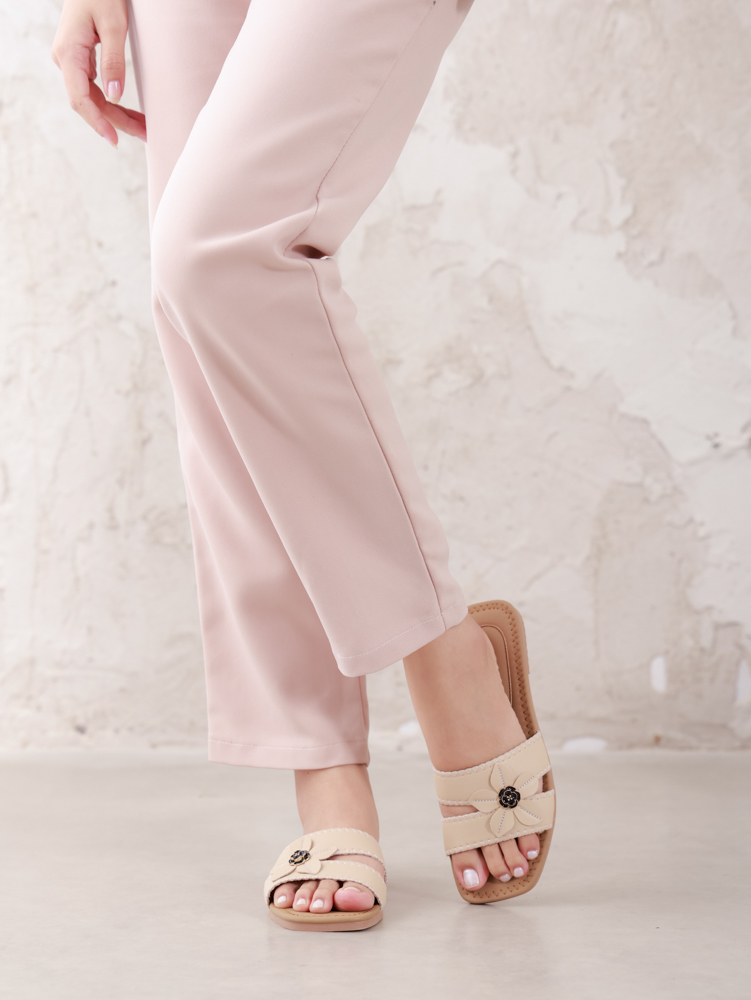 Dép Bệt đính hoa 8972 đen|kem